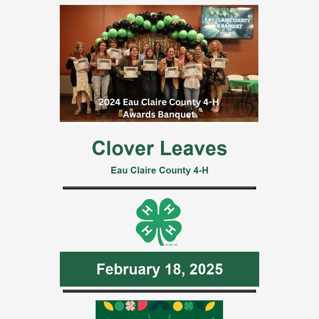 Leaders Association Meetings are held at the Eau Claire County Extension Office the 2nd Tuesday of September, November, January, March, May, and June. 6:00 will be a time to hear policy updates, ask the 4-H Educator questions, and brainstorm club ideas. Meetings will start at 6:30pm. PLEASE make every effort to send a representative to these meetings. Attending is how we make connections and learn from each other to bring the best program we can to the young people in our clubs. It connects your local club program to the wider county program and makes you aware of the wider opportunities in 4-H so that you can promote those to your club members.