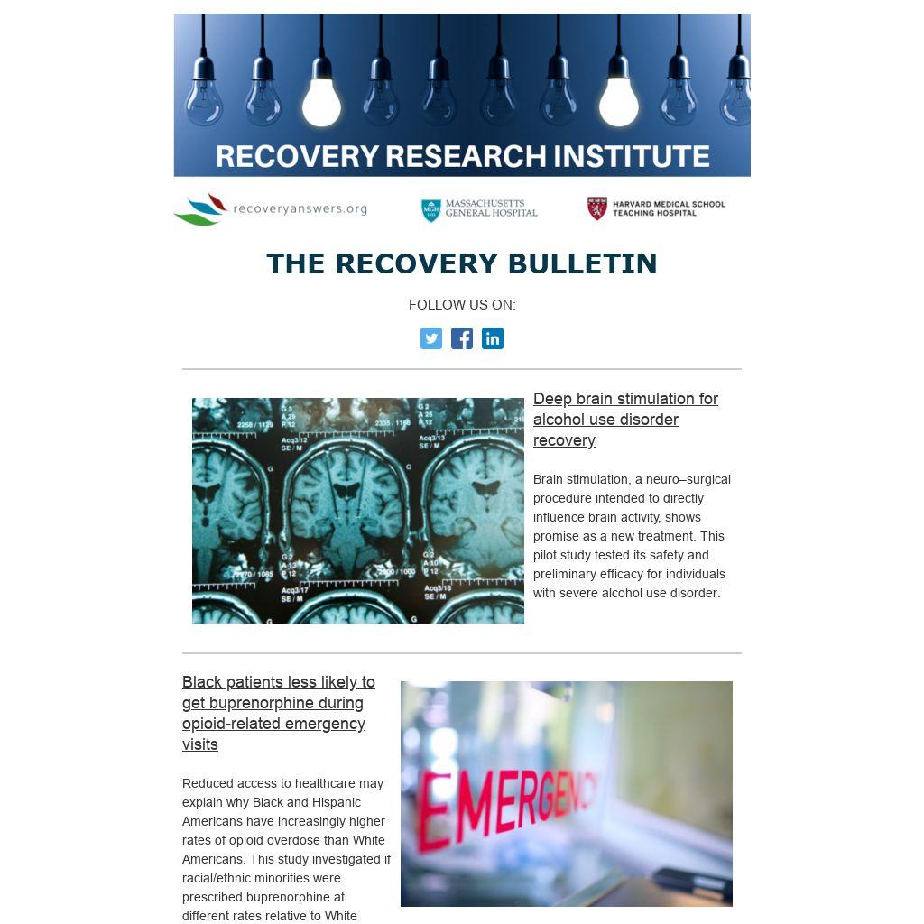 ABOUT: The Recovery Research Institute is a non-profit research institute of the Massachusetts General Hospital, a teaching hospital of Harvard Medical School.