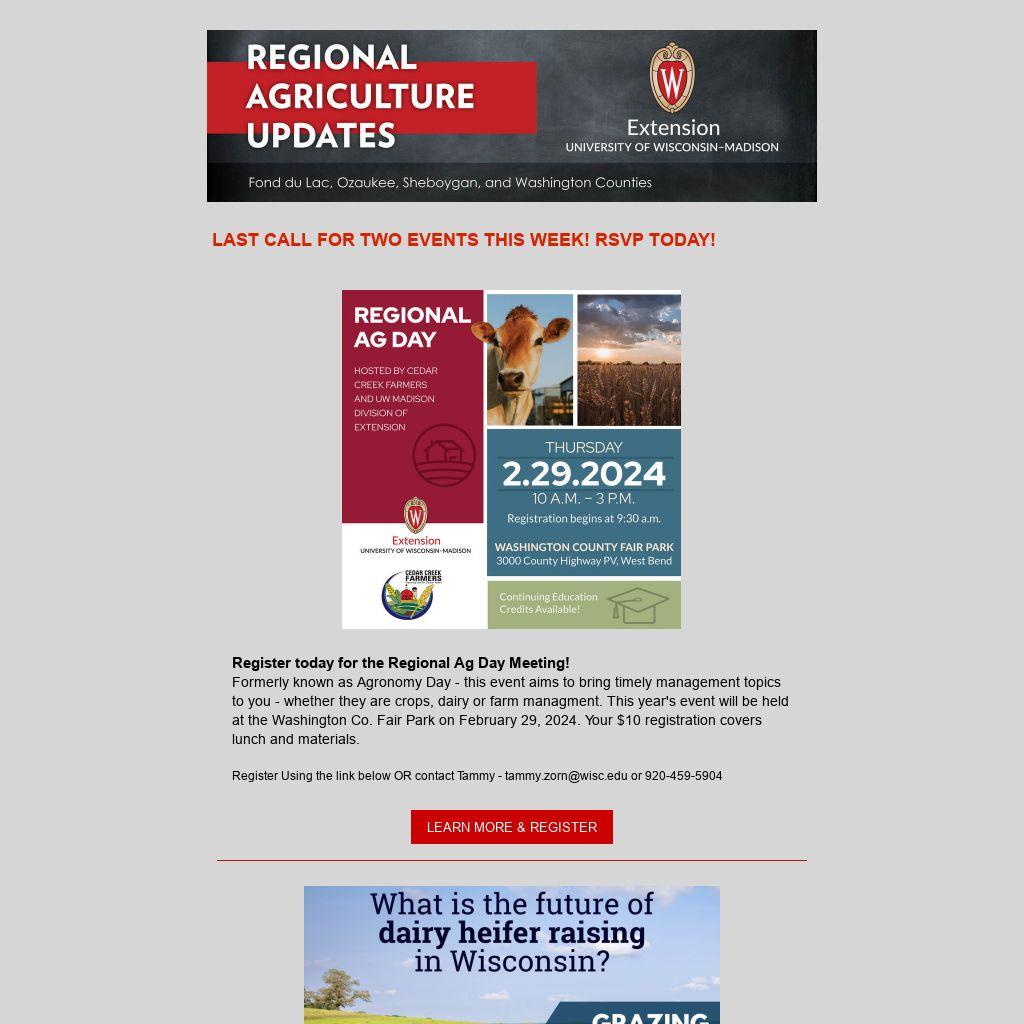 Formerly known as Agronomy Day - this event aims to bring timely management topics to you - whether they are crops, dairy or farm managment. This year's event will be held at the Washington Co. Fair Park on February 29, 2024. Your $10 registration covers lunch and materials.