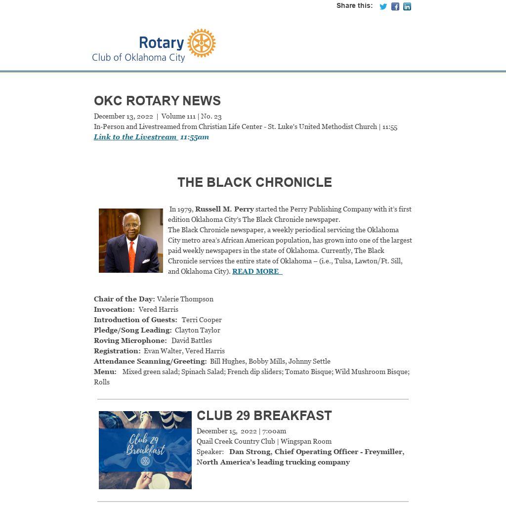 OKC Rotary NewsDecember 13, 2022 | Volume 111 | No. 23