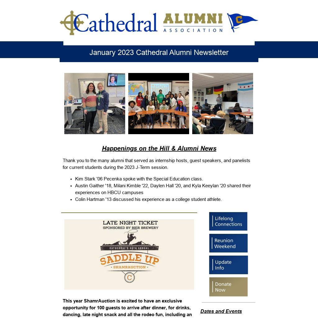 If you are interested in recruiting your fellow classmates to return to campus for a special evening reflecting on old memories and creating new ones, then you should be a class agent! Contact Jean Smith '97, Director of Philanthropic Engagement, at jesmith@gocathedral.com if you are interested in being a class agent or learning more about what that would entail.