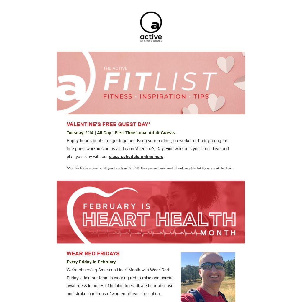 Tuesday, 2/14 | All Day | First-Time Local Adult GuestsHappy hearts beat stronger together. Bring your partner, co-worker or buddy along for free guest workouts on us all day on Valentine's Day. Find workouts you'll both love and plan your day with our class schedule online here.