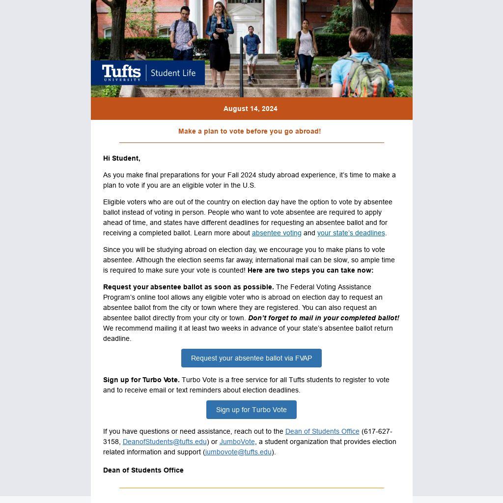 As you make final preparations for your Fall 2024 study abroad experience, it’s time to make a plan to vote if you are an eligible voter in the U.S.