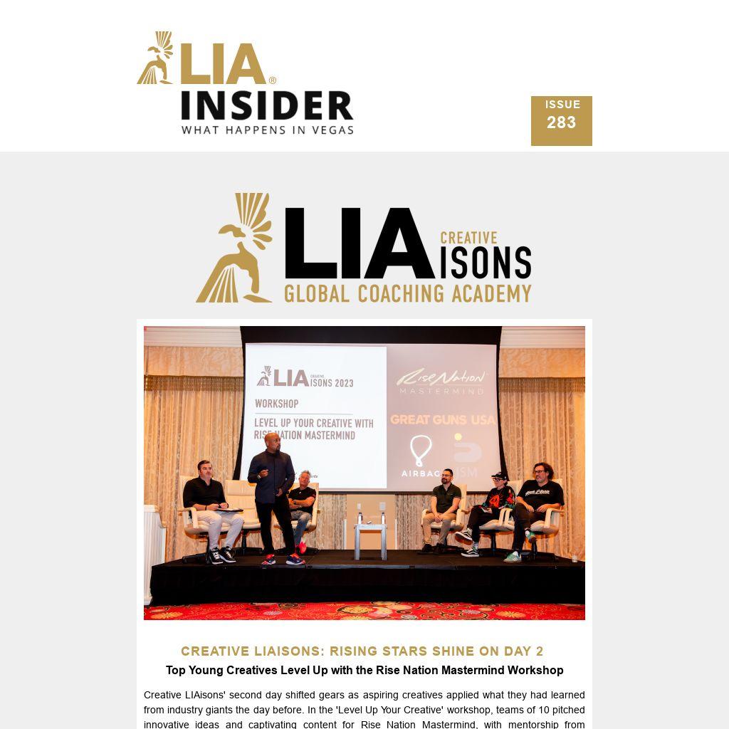 Creative LIAisons' second day shifted gears as aspiring creatives applied what they had learned from industry giants the day before. In the 'Level Up Your Creative' workshop, teams of 10 pitched innovative ideas and captivating content for Rise Nation Mastermind, with mentorship from AIRBAG, JSM Music and LIA jurors. Daymond John, Founder & CEO of FUBU, Shark Tank star and CEO of The Shark Group, made a surprise appearance, joining the LIA jurors to crown a winner.
