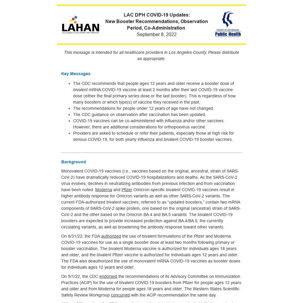 This message is intended for all healthcare providers in Los Angeles County. Please distribute as appropriate.
