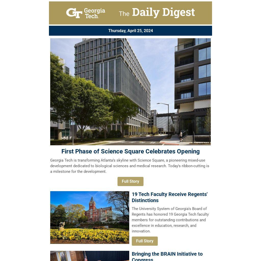 Georgia Tech is transforming Atlanta’s skyline with Science Square, a pioneering mixed-use development dedicated to biological sciences and medical research. Today's ribbon-cutting is a milestone for the development.