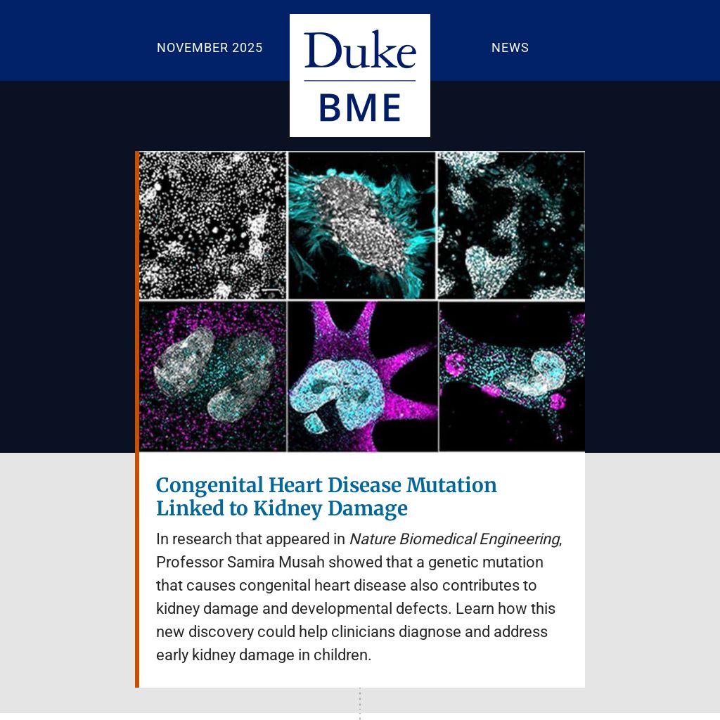 I believe the stories linked in this newsletter convey the breadth of the work we do here in Duke BME, whether that's making inroads to treat long-standing issues like kidney disease, translating useful neural stimulation tools into the clinic, or navigating the ever-changing frontiers of biomedical data science and computational modeling. I'm always proud of the work produced by our community, and I hope you enjoy learning more about some of our recent successes.