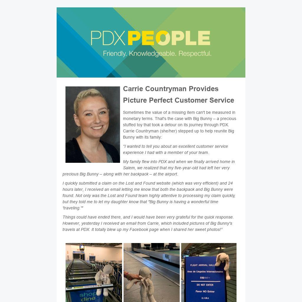 Sometimes the value of a missing item can't be measured in monetary terms. That's the case with Big Bunny – a precious stuffed toy that took a detour on its journey through PDX. Carrie Countryman (she/her) stepped up to help reunite Big Bunny with its family: