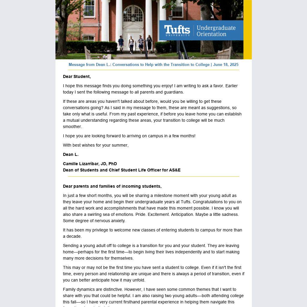 Message from Dean L.: Conversations to Help with the Transition to College | June 18, 2025 |