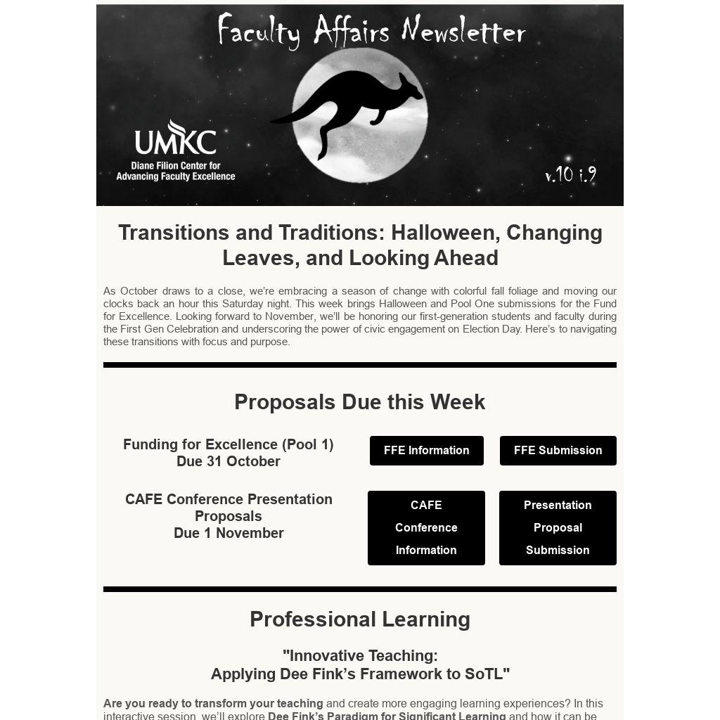 Don’t miss this opportunity to spark creativity and drive meaningful change! Join the SoTL movement at UMKC! Wednesday, 6 November 2024, 12:00-1:30 in the CAFE Conference Room - Newcomb Hall.