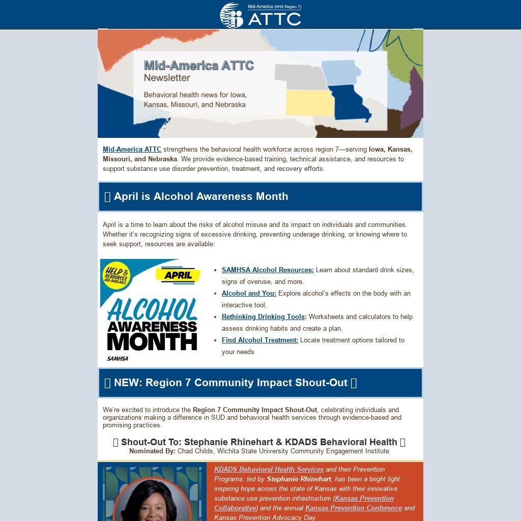 Thank you for being part of the Mid-America ATTC community! Stay connected for more updates and opportunities to engage in strengthening the behavioral health workforce in region 7.