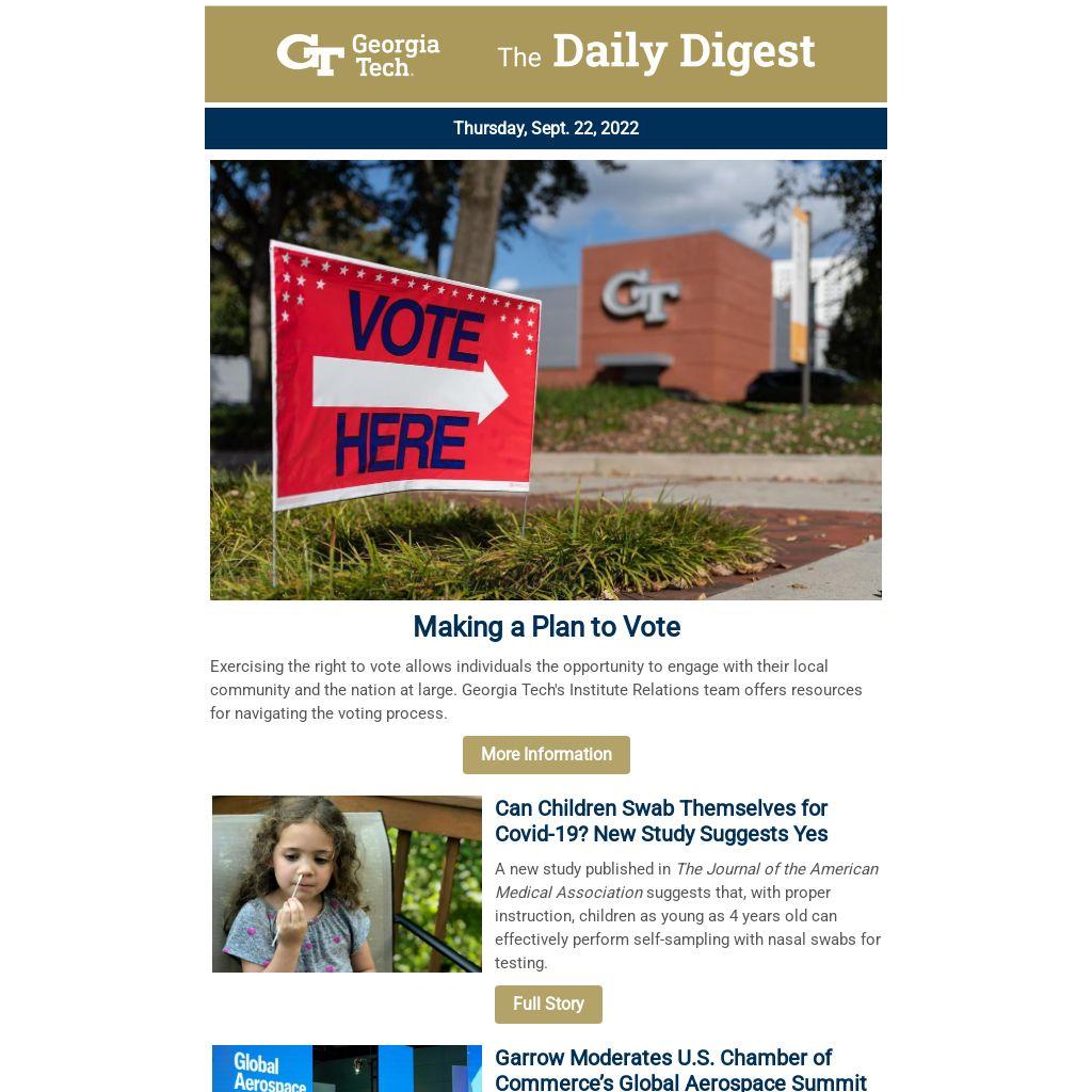 Exercising the right to vote allows individuals the opportunity to engage with their local community and the nation at large. Georgia Tech's Institute Relations team offers resources for navigating the voting process.