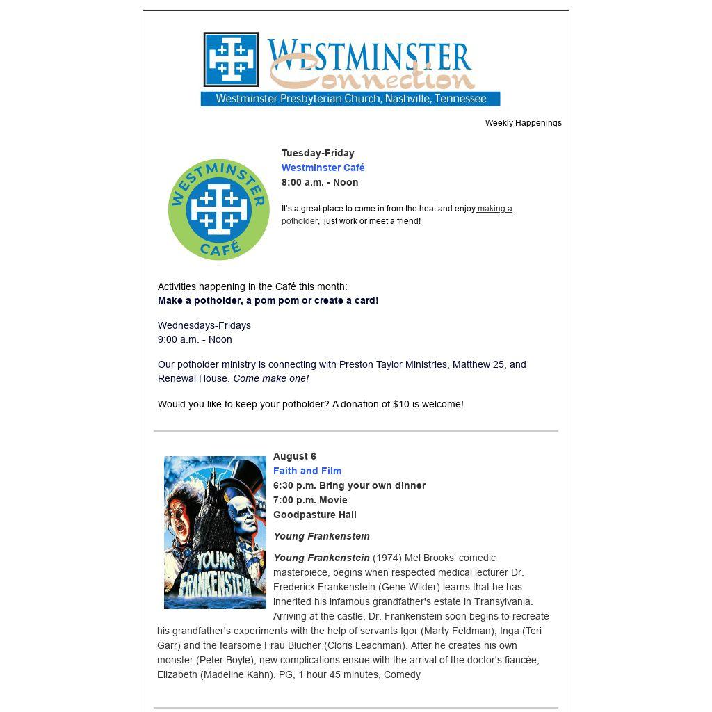 Young Frankenstein (1974) Mel Brooks’ comedic masterpiece, begins when respected medical lecturer Dr. Frederick Frankenstein (Gene Wilder) learns that he has inherited his infamous grandfather's estate in Transylvania. Arriving at the castle, Dr. Frankenstein soon begins to recreate his grandfather's experiments with the help of servants Igor (Marty Feldman), Inga (Teri Garr) and the fearsome Frau Blücher (Cloris Leachman). After he creates his own monster (Peter Boyle), new complications ensue with the arrival of the doctor's fiancée, Elizabeth (Madeline Kahn). PG, 1 hour 45 minutes, Comedy