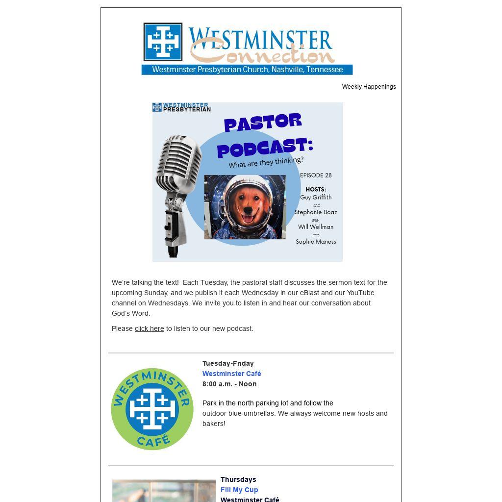 We’re talking the text!  Each Tuesday, the pastoral staff discusses the sermon text for the upcoming Sunday, and we publish it each Wednesday in our eBlast and our YouTube channel on Wednesdays. We invite you to listen in and hear our conversation about God’s Word.
