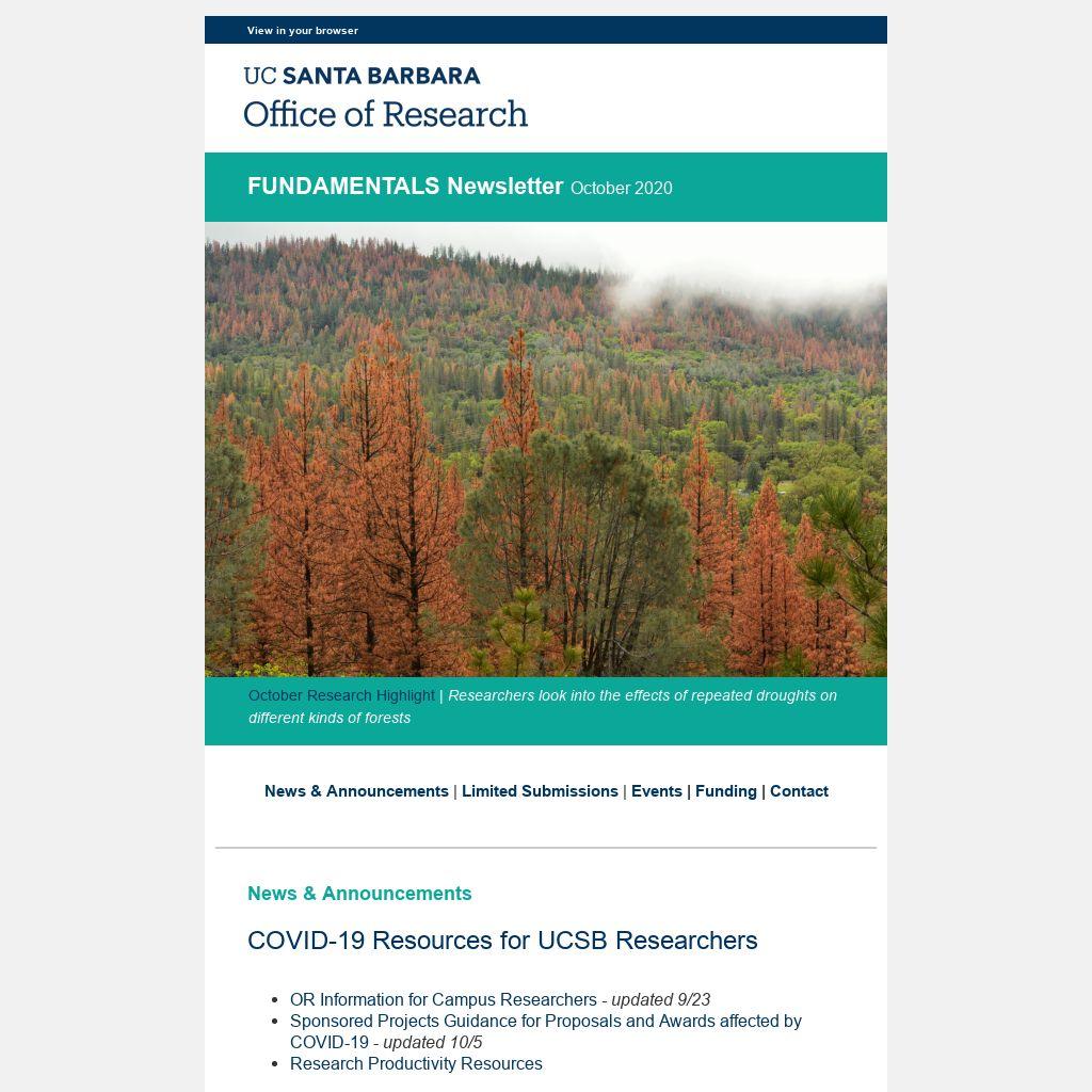 The Research Development unit of the Office of Research at the UC Santa Barbara publishes Fundamentals. Click here to get in touch with Research Development staff regarding your proposal development needs.