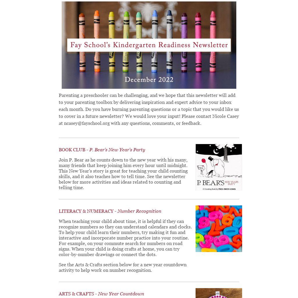 Parenting a preschooler can be challenging, and we hope that this newsletter will add to your parenting toolbox by delivering inspiration and expert advice to your inbox each month. Do you have burning parenting questions or a topic that you would like us to cover in a future newsletter? We would love your input! Please contact Nicole Casey at ncasey@fayschool.org with any questions, comments, or feedback.