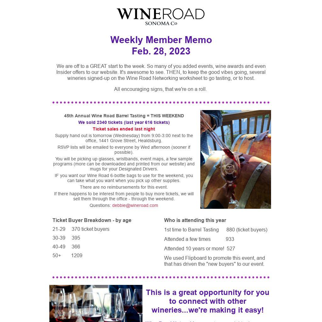 We are off to a GREAT start to the week. So many of you added events, wine awards and even Insider offers to our website. It's awesome to see. THEN, to keep the good vibes going, several wineries signed-up on the Wine Road Networking worksheet to go tasting, or to host.