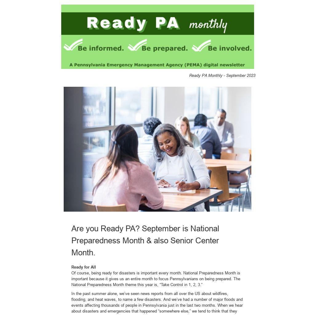 Are you Ready PA? September is National Preparedness Month & also Senior Center Month.