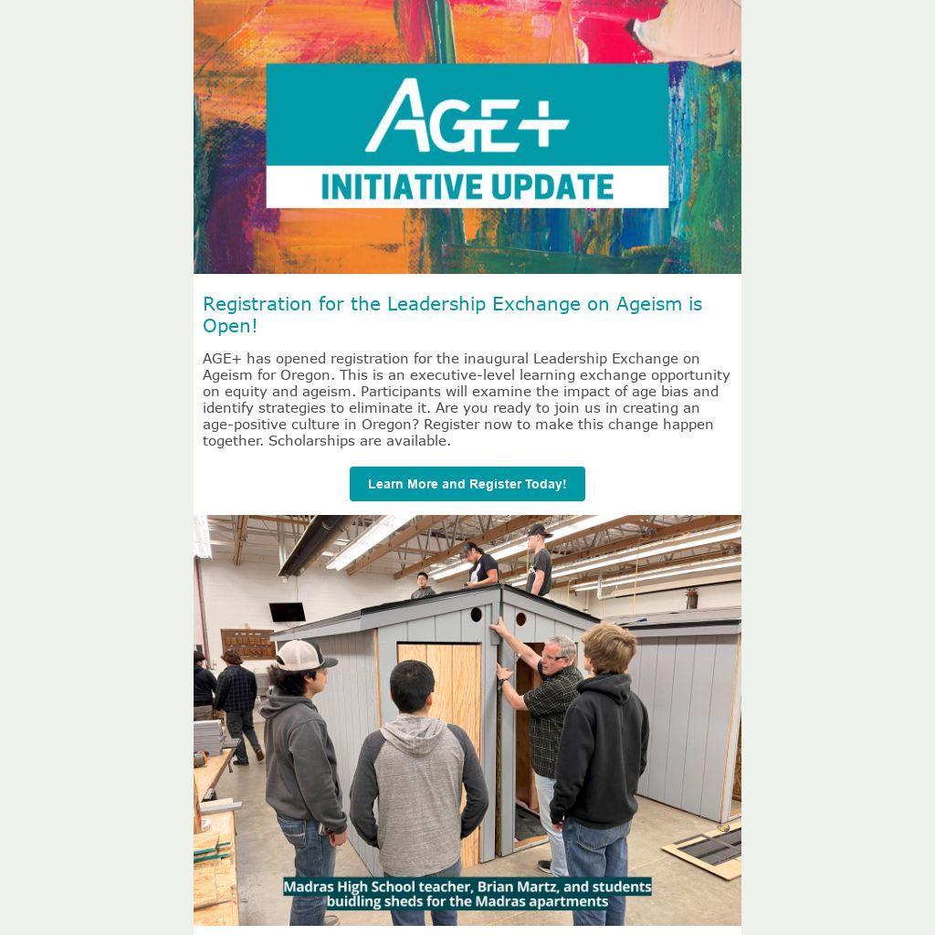 AGE+ has opened registration for the inaugural Leadership Exchange on Ageism for Oregon. This is an executive-level learning exchange opportunity on equity and ageism. Participants will examine the impact of age bias and identify strategies to eliminate it. Are you ready to join us in creating an age-positive culture in Oregon? Register now to make this change happen together. Scholarships are available.