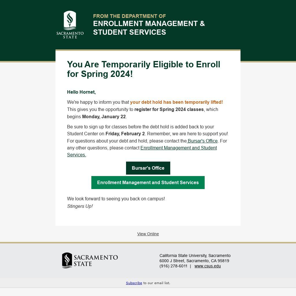 You Are Temporarily Eligible to Enroll for Spring 2024!