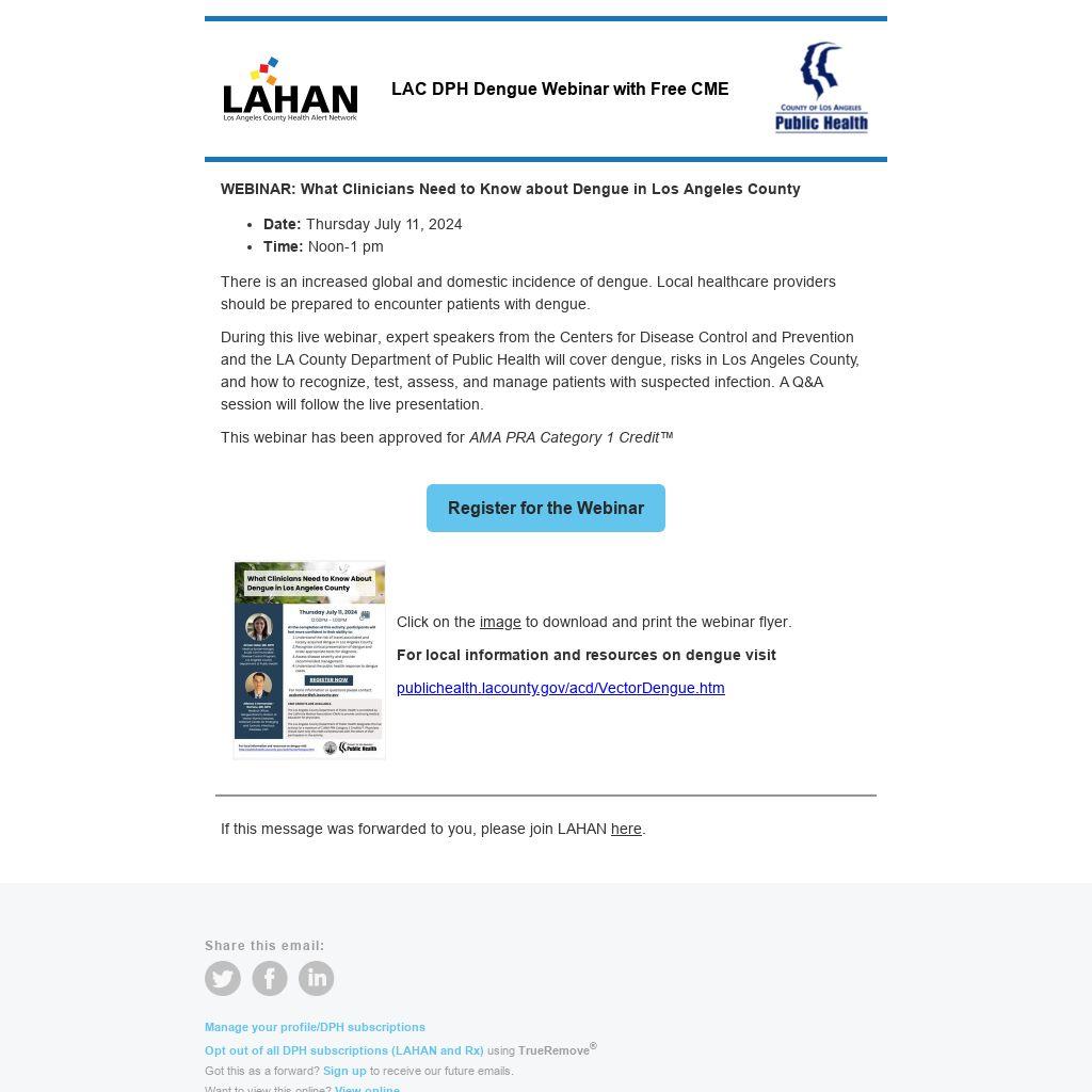 WEBINAR: What Clinicians Need to Know about Dengue in Los Angeles County