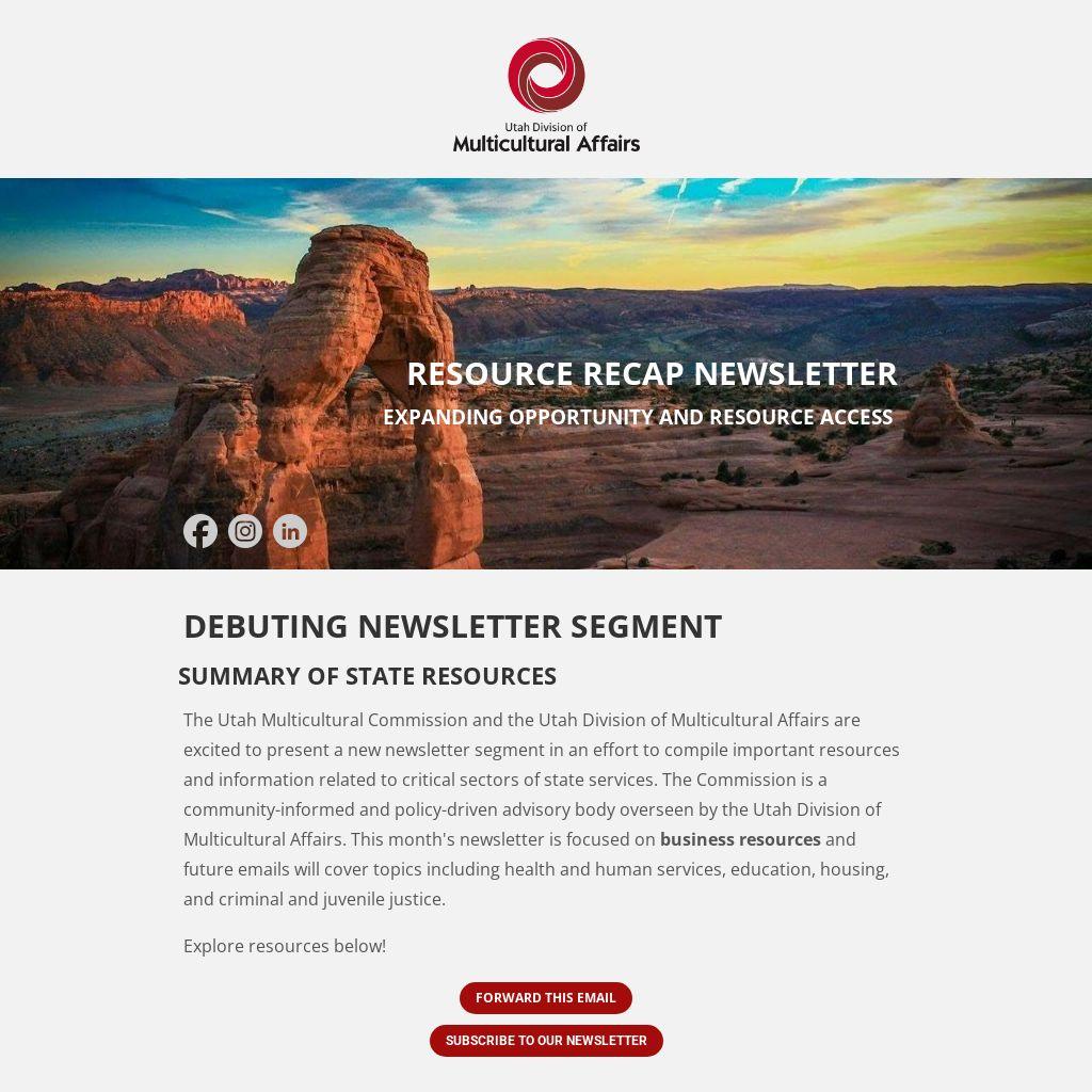 The Utah Multicultural Commission and the Utah Division of Multicultural Affairs are excited to present a new newsletter segment in an effort to compile important resources and information related to critical sectors of state services. The Commission is a community-informed and policy-driven advisory body overseen by the Utah Division of Multicultural Affairs. This month's newsletter is focused on business resources and future emails will cover topics including health and human services, education, housing, and criminal and juvenile justice.
