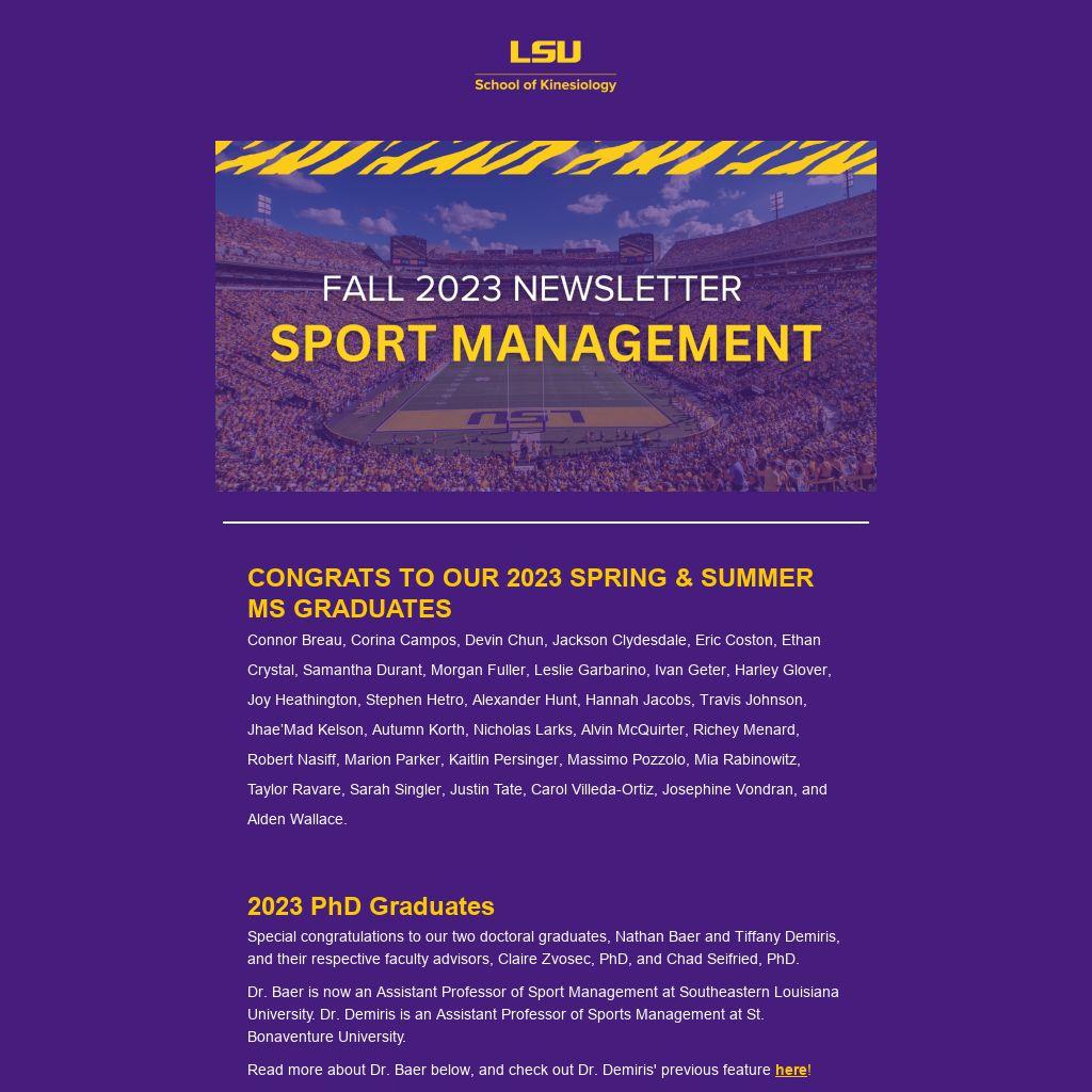 | FOLLOW US ON "X," FORMERLY TWITTERFollow @LSUSportMgt to stay up to date with everything our students, faculty, and alumni are doing.