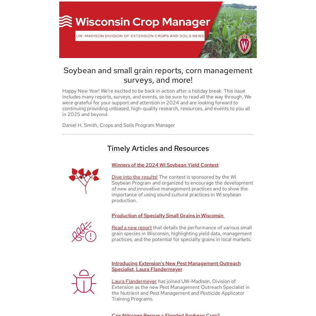 Sign up to receive pest monitoring data and maps, current articles on economically important plant pests affecting Wisconsin's field crops, fruits, vegetables, nurseries, and forests. Sign up and read on the web here.