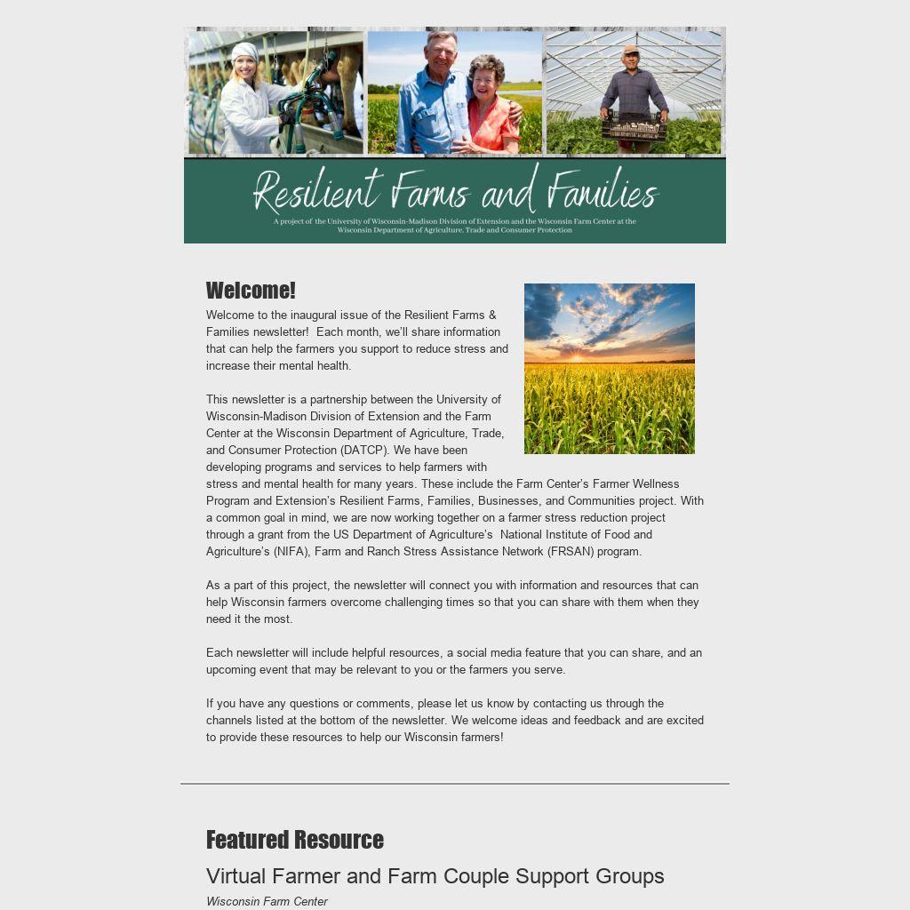 As a part of this project, the newsletter will connect you with information and resources that can help Wisconsin farmers overcome challenging times so that you can share with them when they need it the most.