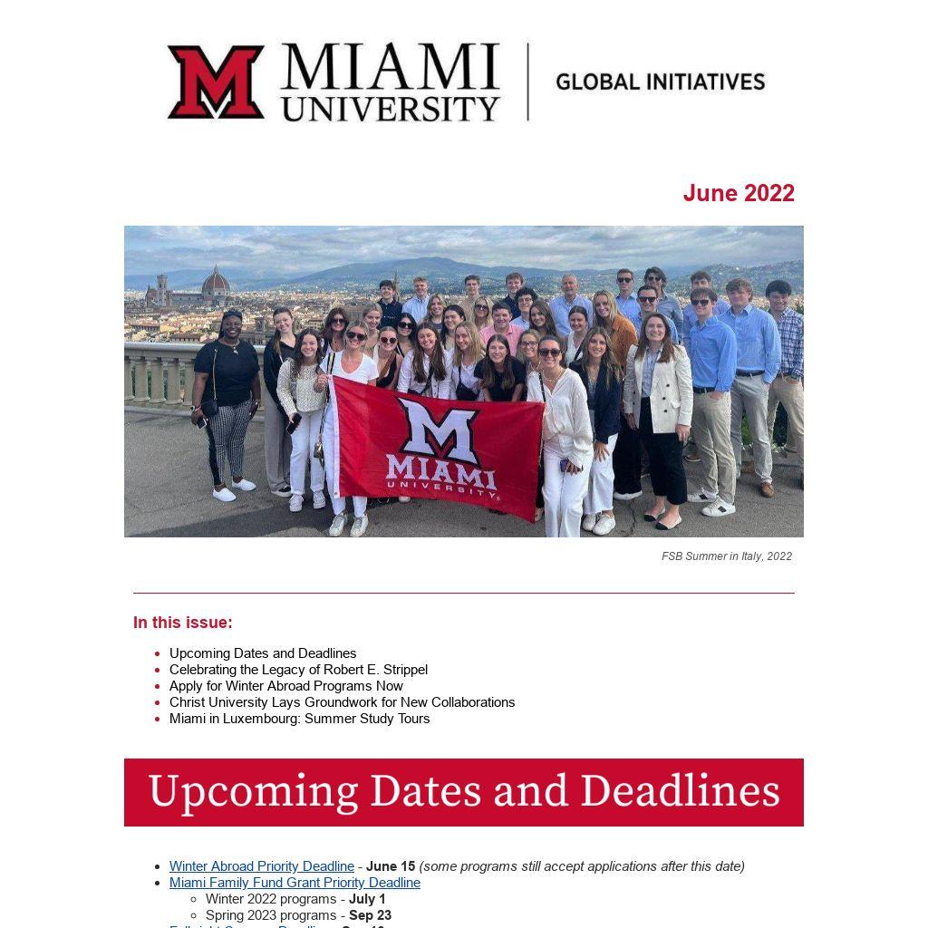 Study tours are just one of the ways that we help our students to obtain a comprehensive educational experience in Europe. We hope you'll join the Miami Tradition: applications for Summer or Fall 2023 in Luxembourg open in August!