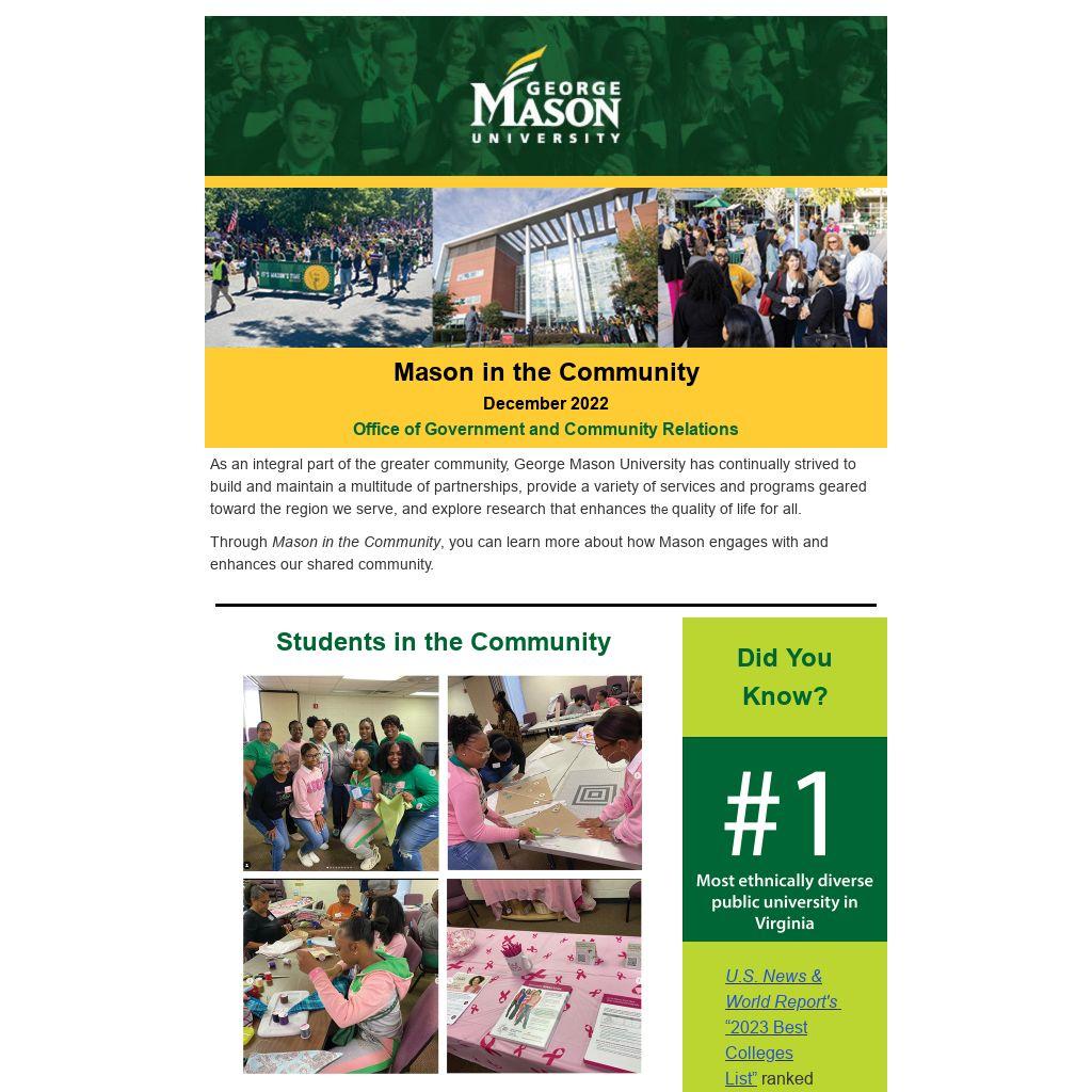 Kerry also manages Mason’s relationship with Congressional members. He provides advice on authorization and appropriations legislation, develops amendments, arranges Capitol Hill meetings for Mason faculty and administrators, drafts testimony for Congressional hearings, brings Congressional members and staff to Mason campuses, and composes comments on federal agency regulations.