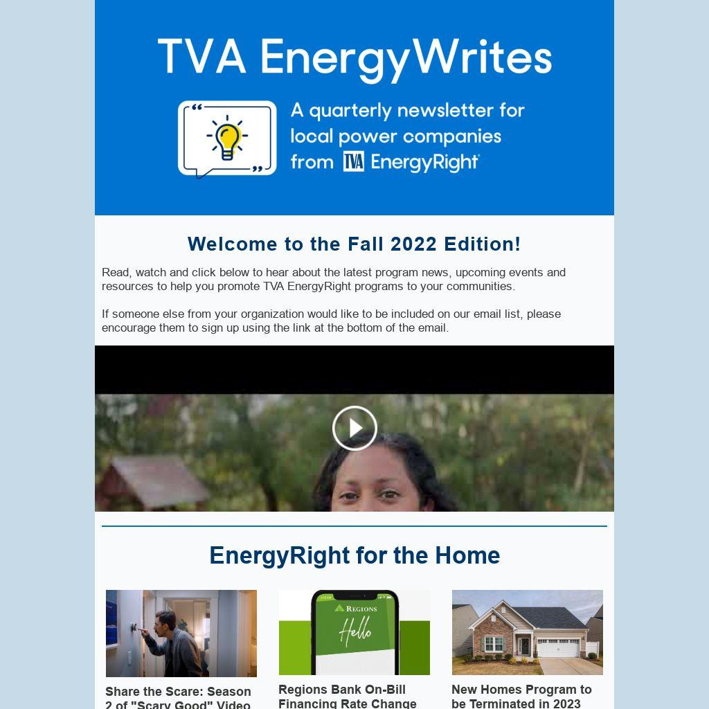 Read, watch and click below to hear about the latest program news, upcoming events and resources to help you promote TVA EnergyRight programs to your communities.
