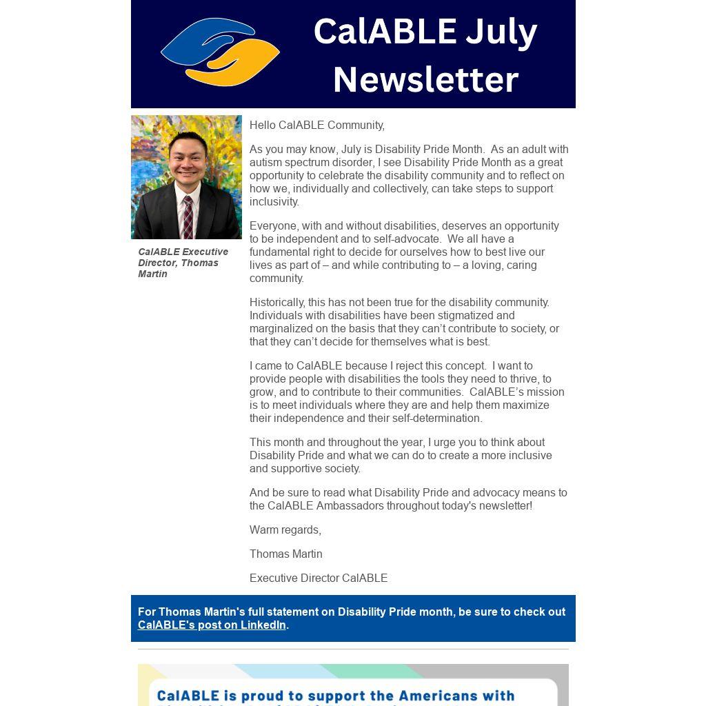 And be sure to read what Disability Pride and advocacy means to the CalABLE Ambassadors throughout today's newsletter!