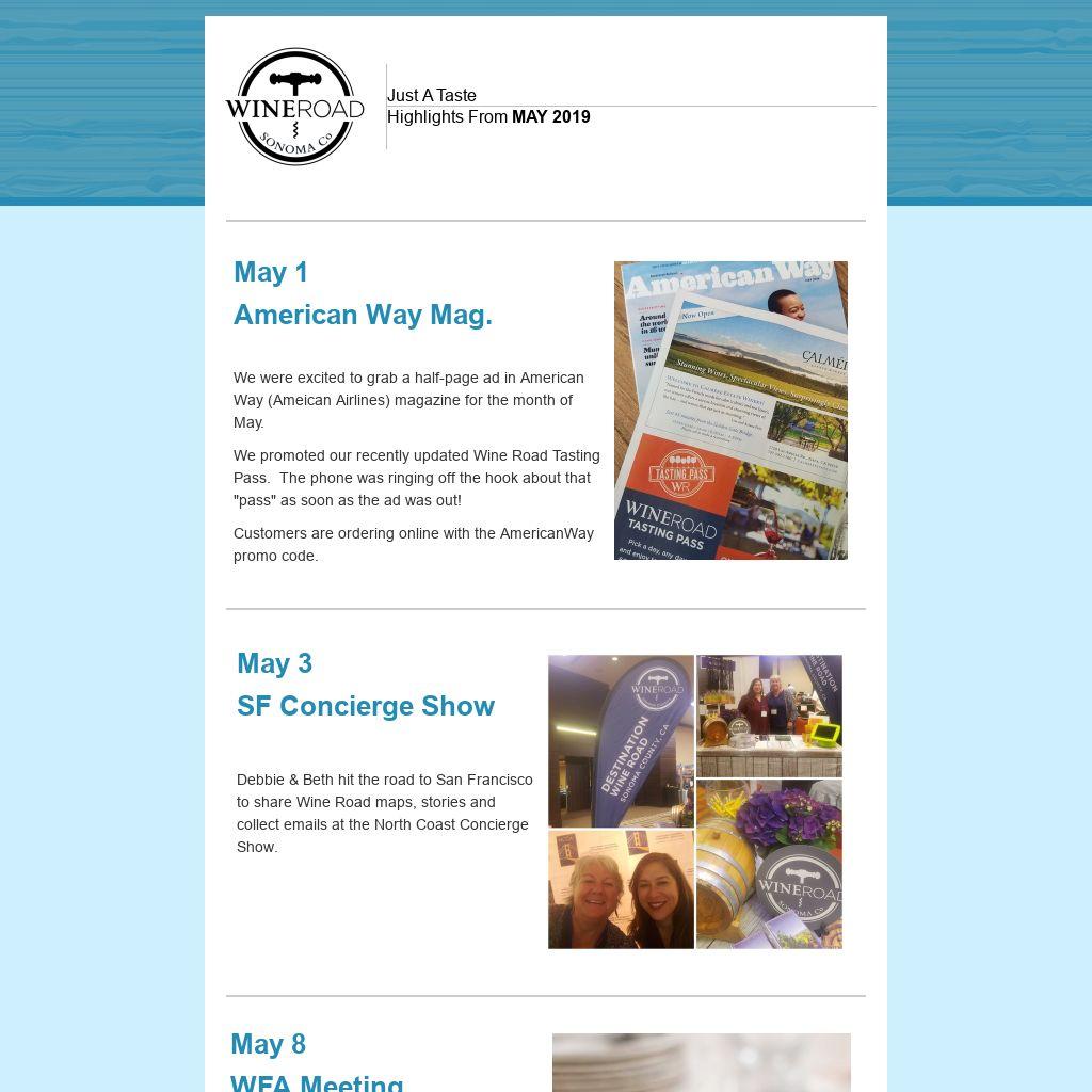 Our second annual, invitation-only press event, hosted by Alexander Valley Winegrowers, Winegrowers of Dry Creek, Russian River Valley Winegrowers, Sonoma Valley Vintners and Wine Road. We hosted 13 journalists for 3 full days of wine education and professional development. The goal is to be their "go to" connections when they have a wine country story in the works.