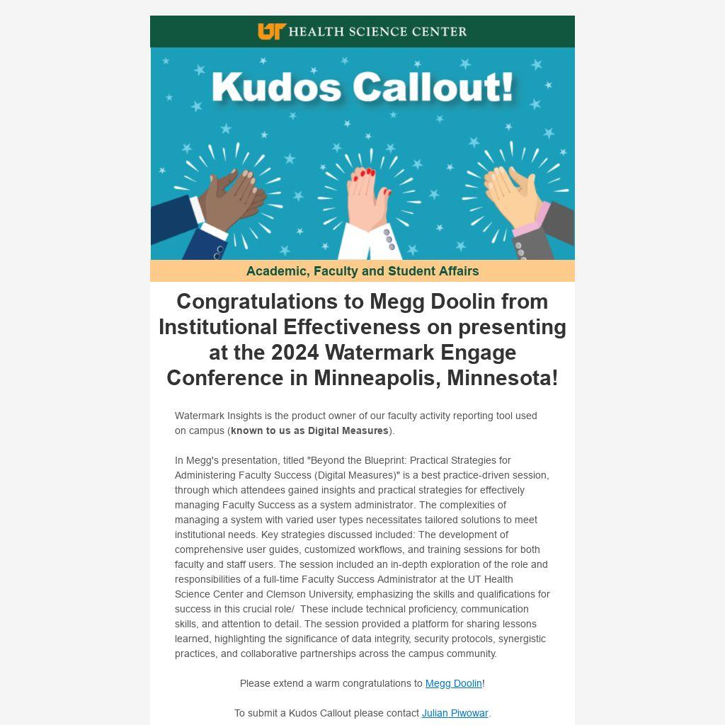 Congratulations to Megg Doolin from Institutional Effectiveness on presenting at the 2024 Watermark Engage Conference in Minneapolis, Minnesota! |