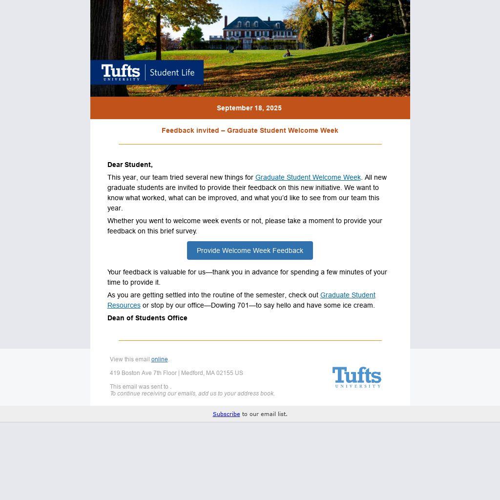 Whether you went to welcome week events or not, please take a moment to provide your feedback on this brief survey.