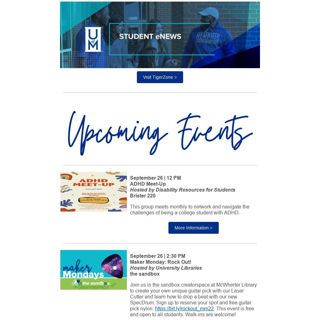 | September 26 | 12 PM ADHD Meet-Up Hosted by Disability Resources for Students Brister 220