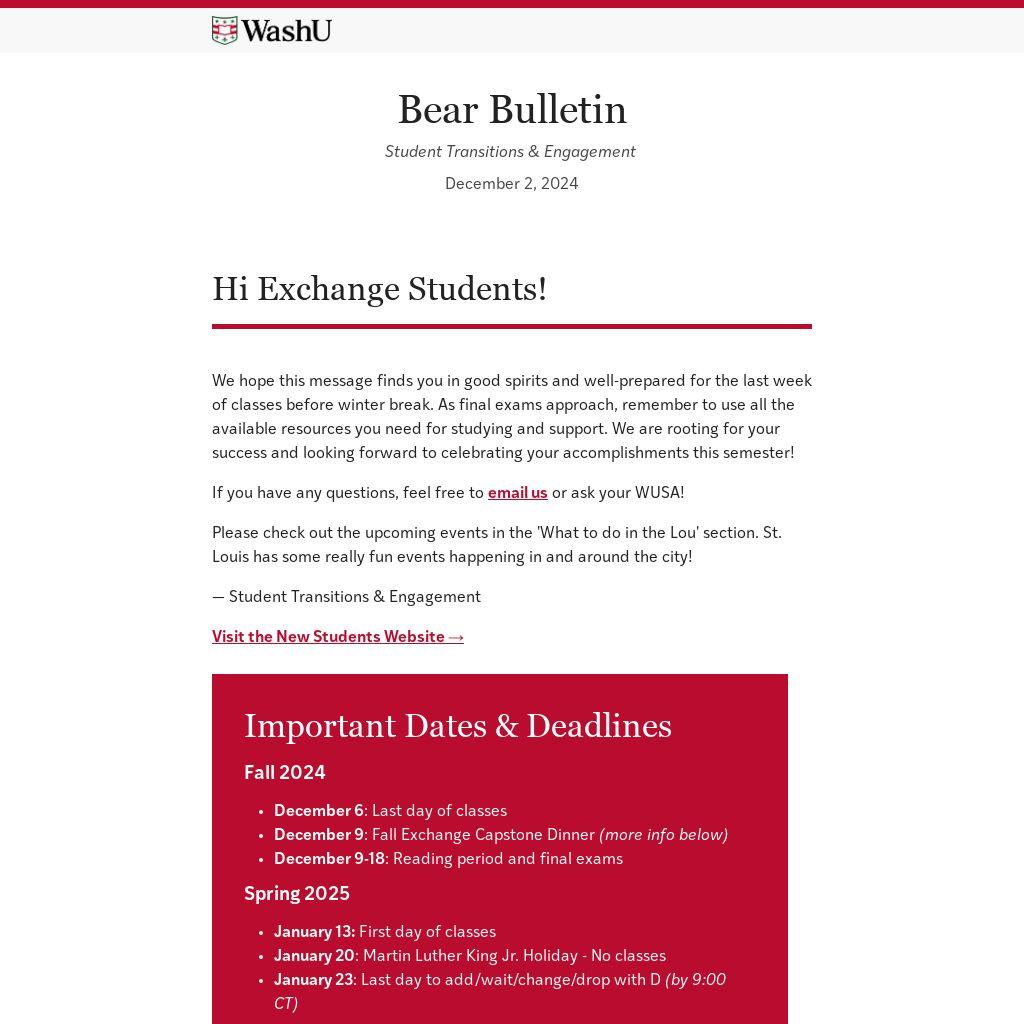 We hope this message finds you in good spirits and well-prepared for the last week of classes before winter break. As final exams approach, remember to use all the available resources you need for studying and support. We are rooting for your success and looking forward to celebrating your accomplishments this semester!
