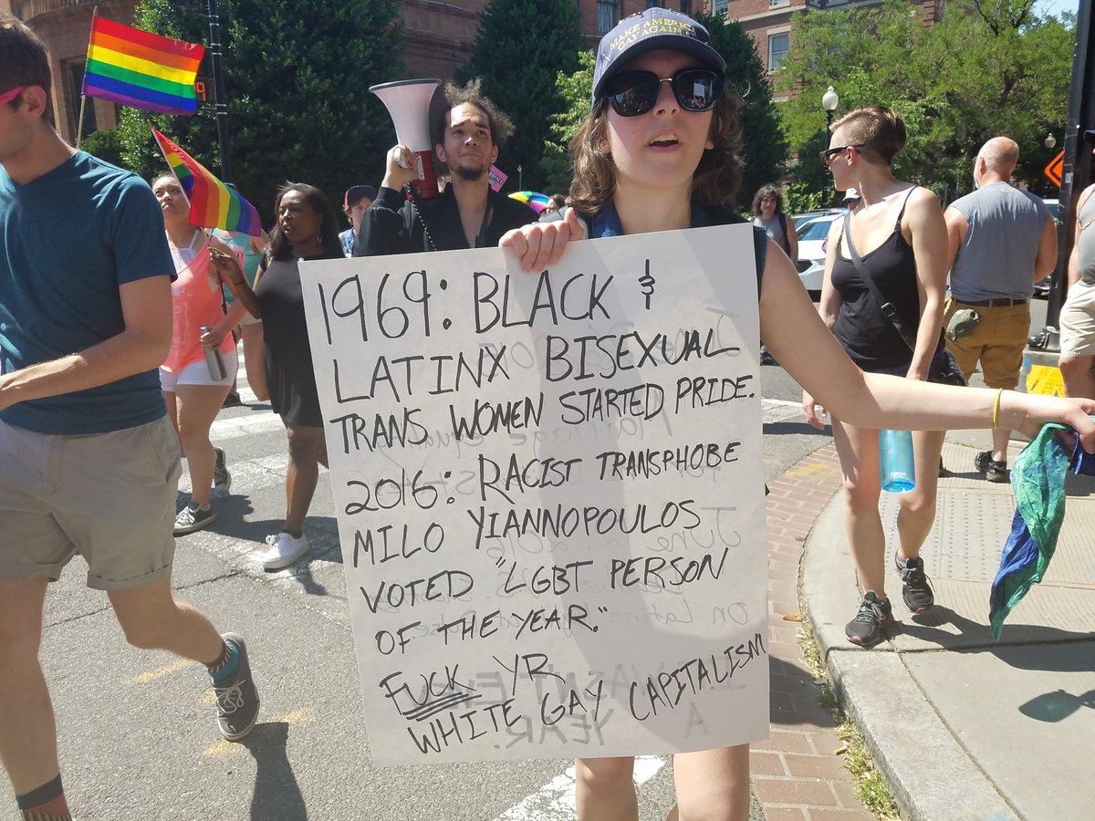 The DC Capital Pride Parade was disrupted by protesters Saturday who said the event is too corporate and marginalizes minorities and the very community the tradition was created to celebrate. Protesters from No Justice No Pride linked arms to block the parade route near 15th and P streets in Northwest Washington about 5:30P. With a pink, turquoise and yellow banner stretched across the street, the protesters shouted “What side are my people? What side are you on?” and “No justice, no pride.” More here.