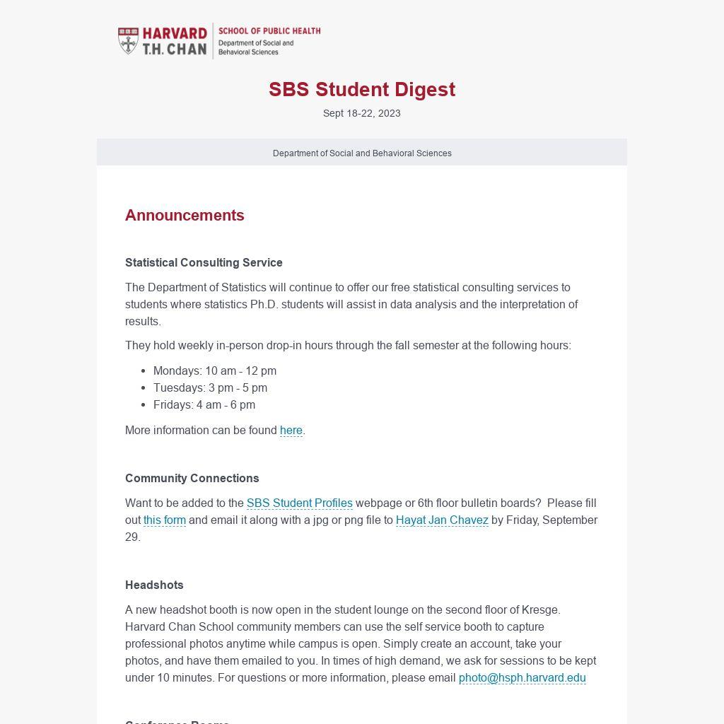 Wed, Sept 20, 1:00-1:50pm, FXB G10