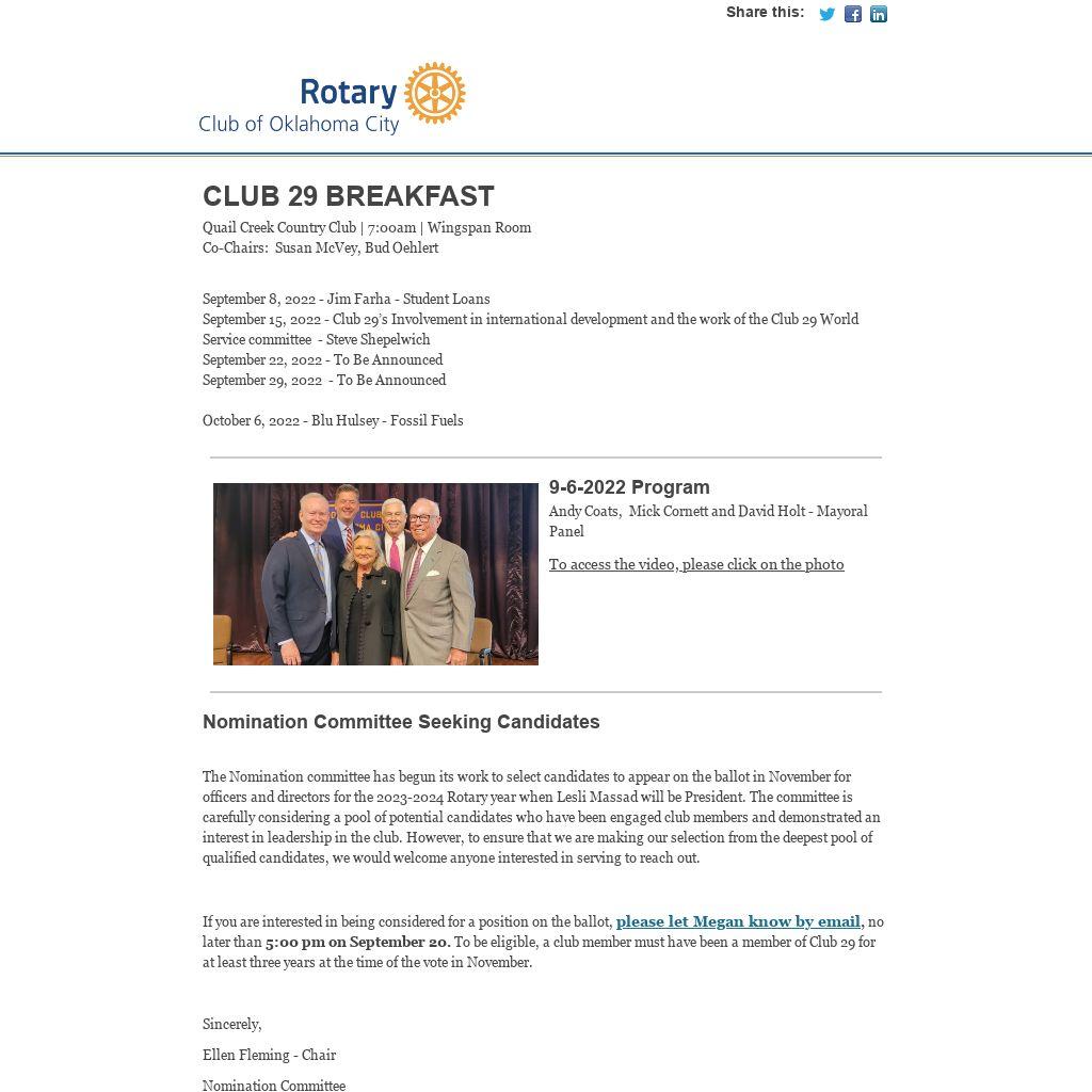September 15, 2022 - Club 29’s Involvement in international development and the work of the Club 29 World Service committee - Steve Shepelwich