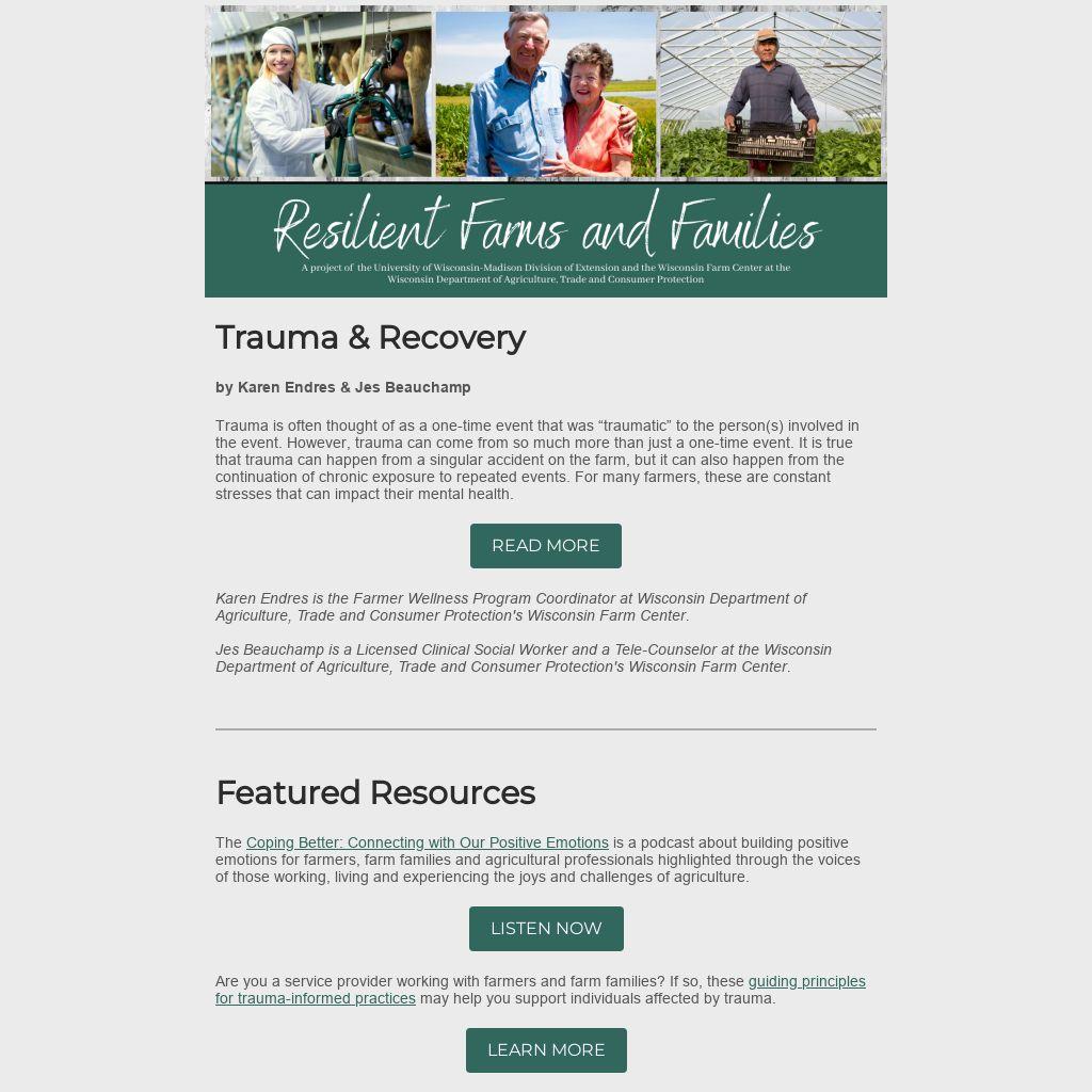 Karen Endres is the Farmer Wellness Program Coordinator at Wisconsin Department of Agriculture, Trade and Consumer Protection's Wisconsin Farm Center.