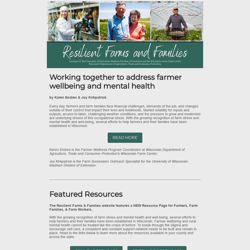 The Resilient Farms & Families website features a NEW Resource Page for Farmers, Farm Families, & Farm Workers.
