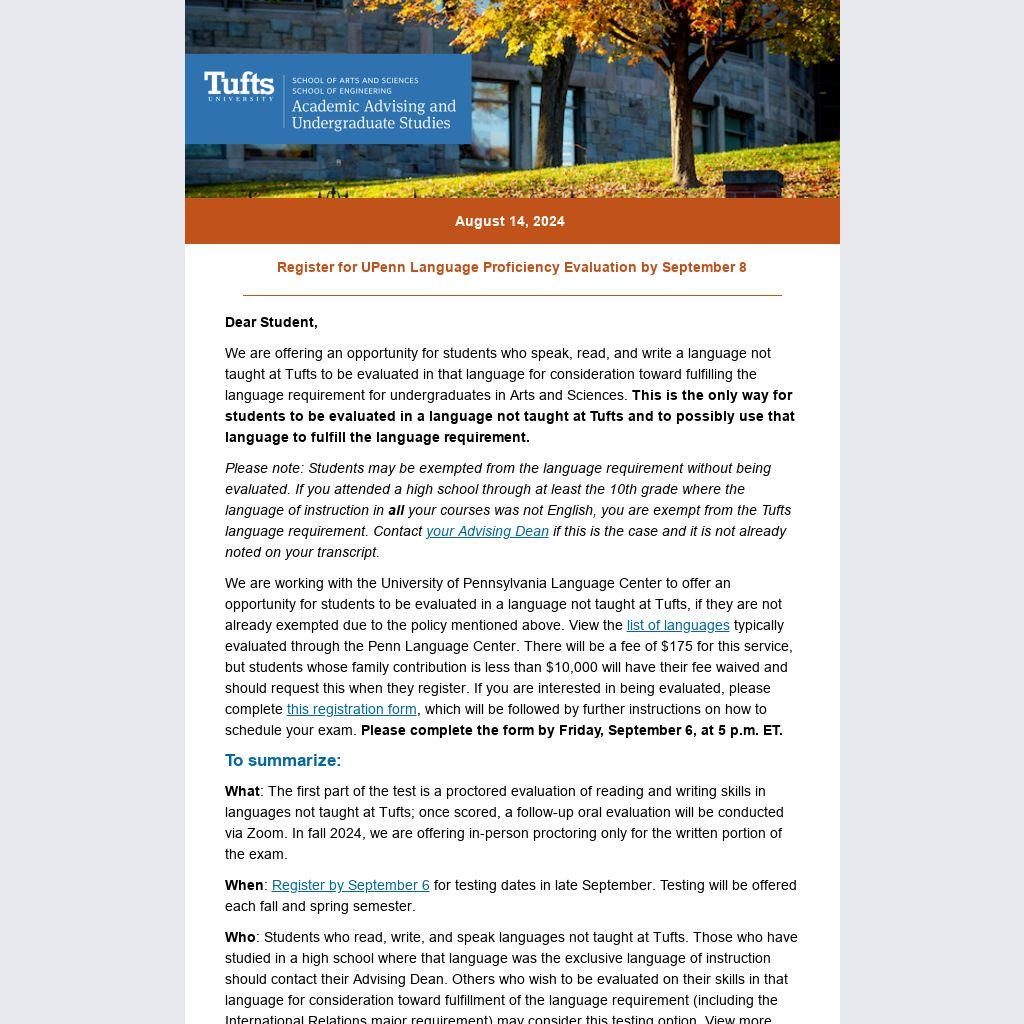 Register for UPenn Language Proficiency Evaluation by September 8 |