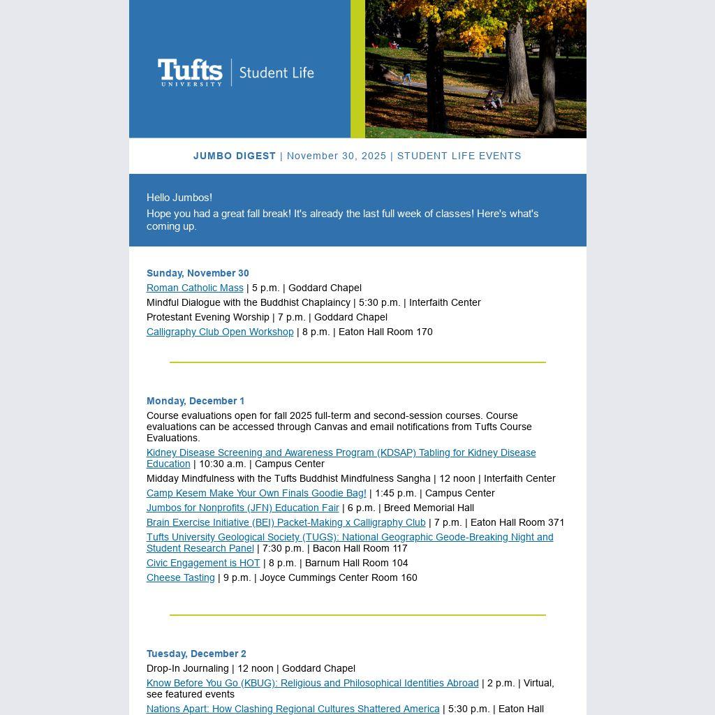 JUMBO DIGEST | November 30, 2025 | STUDENT LIFE EVENTS | |