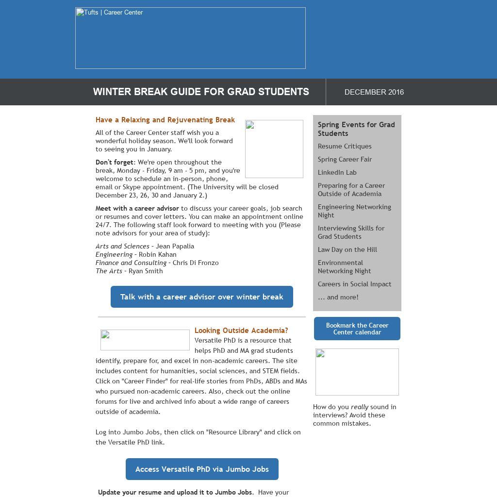 All of the Career Center staff wish you a wonderful holiday season. We'll look forward to seeing you in January.