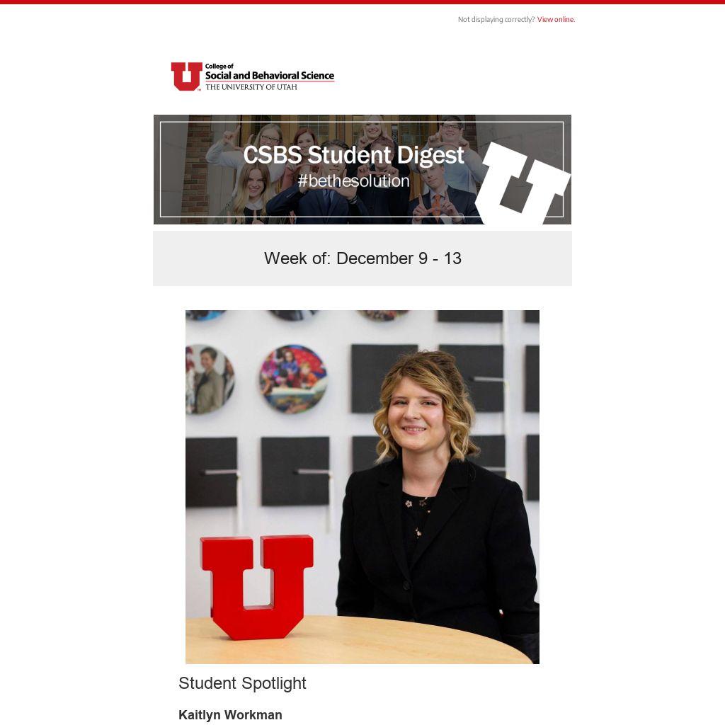 Meet Kaitlyn Workman! She’s a double major in political science and communications, and a Solutions Scholar. "I am a dual major in political science and mass communications with an emphasis in pre-law and a minor in campaign management. This last year, I've interned on local campaigns for the 2018 midterms and worked at the office of Congressman Chris Stewart. I spend my weekends competing for the John R. Park Debate Society, where I placed third in the International Forensics Association Championships in Berlin, Germany for political speaking and became a national semifinalist for debate. I fell in love with political science when I realized that good policy could save more lives than a doctor or a scientist. I want to make our world a better place, and creating thoughtful, deliberate laws is an excellent way to achieve that. I hope to spend the rest of my life studying what laws make people happy and fulfilled, and which ones have unintended negative consequences. I also love elections, and could not be more excited to study campaigns and intern with them. Political science allows me to be analytical, intellectually challenged, dedicated to my work, and genuinely happy."