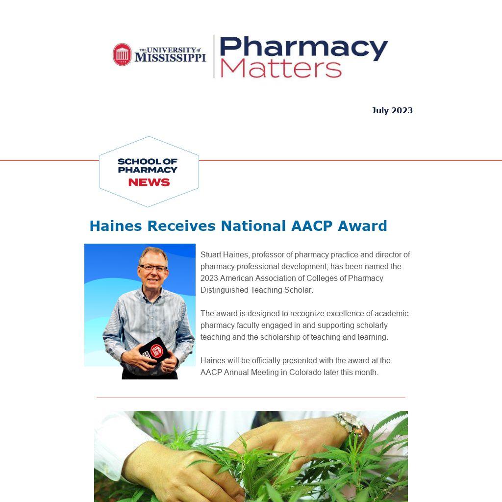 | Stuart Haines, professor of pharmacy practice and director of pharmacy professional development, has been named the 2023 American Association of Colleges of Pharmacy Distinguished Teaching Scholar.