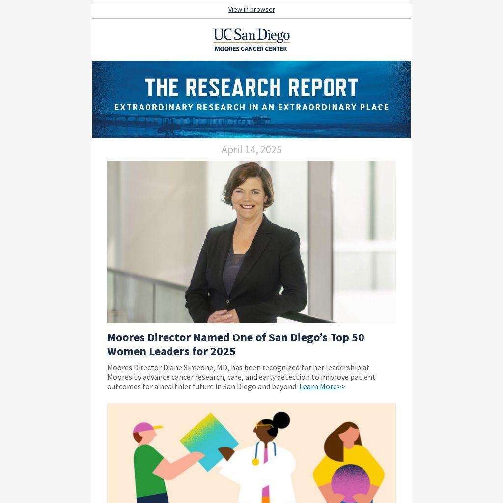 Moores Director Diane Simeone, MD, has been recognized for her leadership at Moores to advance cancer research, care, and early detection to improve patient outcomes for a healthier future in San Diego and beyond. Learn More>>