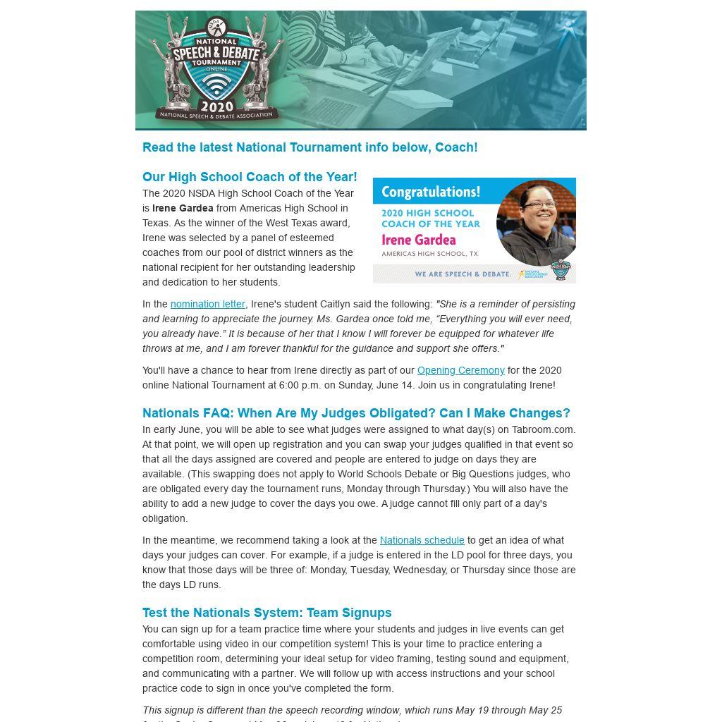 Read the latest National Tournament info below, Coach!